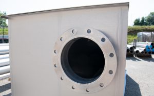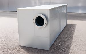 Die beiden Behälter dienen zur Vorfilterung von Schwerstoffen bzw. Schwimmstoffen und werden von unserem Kunden noch maschinell ausgerüstet (mit Edelstahlschnecke) und funktionsfähig adaptiert. Vorkonstruktionen für die Siebstation und den Fettfang wurden bereits bei unserer Fertigung vorgesehen.