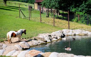 45 Tierarten leben hier, von Steinböcken und Gams, die in Österreichs größter Zucht beheimatet sind, bis hin zu Fasanen, Enten, Truthühnern, Pfauen und sogar Belgischen Riesenhasen. Dazu kommen ein großer Abenteuerspielplatz, Streichelgehege, eine gemütlich-feine Gastronomie und das satte Grün des waldreichen Hügellandes. Urlaub mitten im Wildpark – das gibt es nur hier.