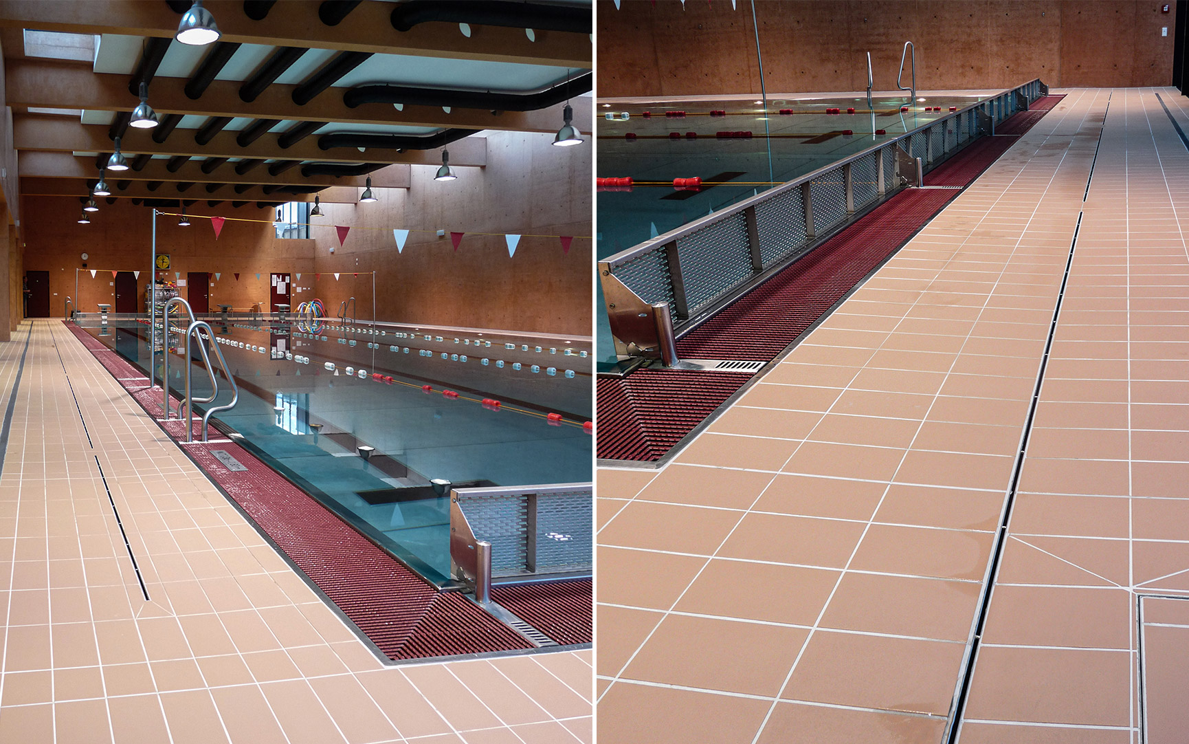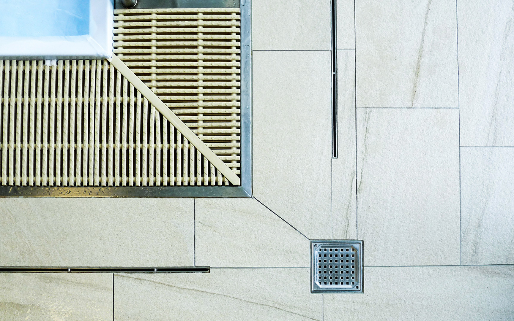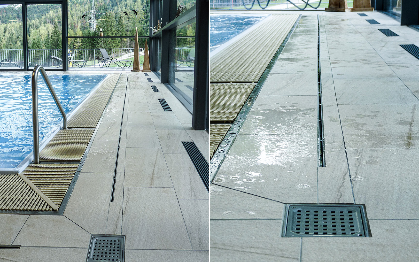 im Thermenbereich – mittels Badrinnen,