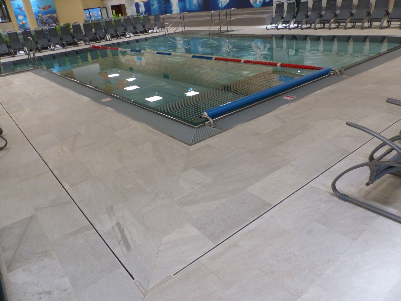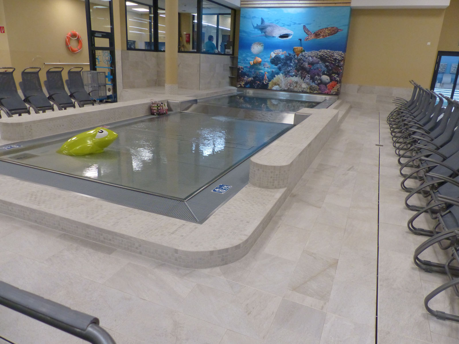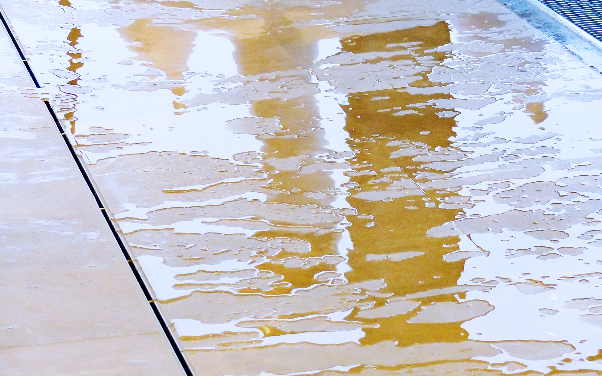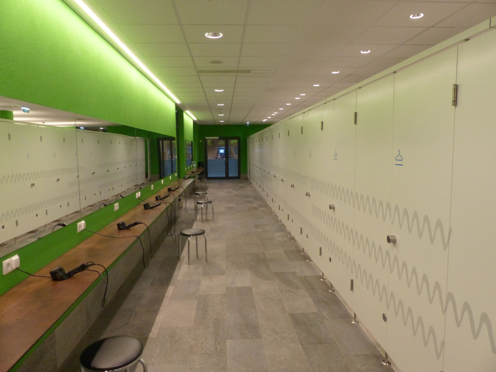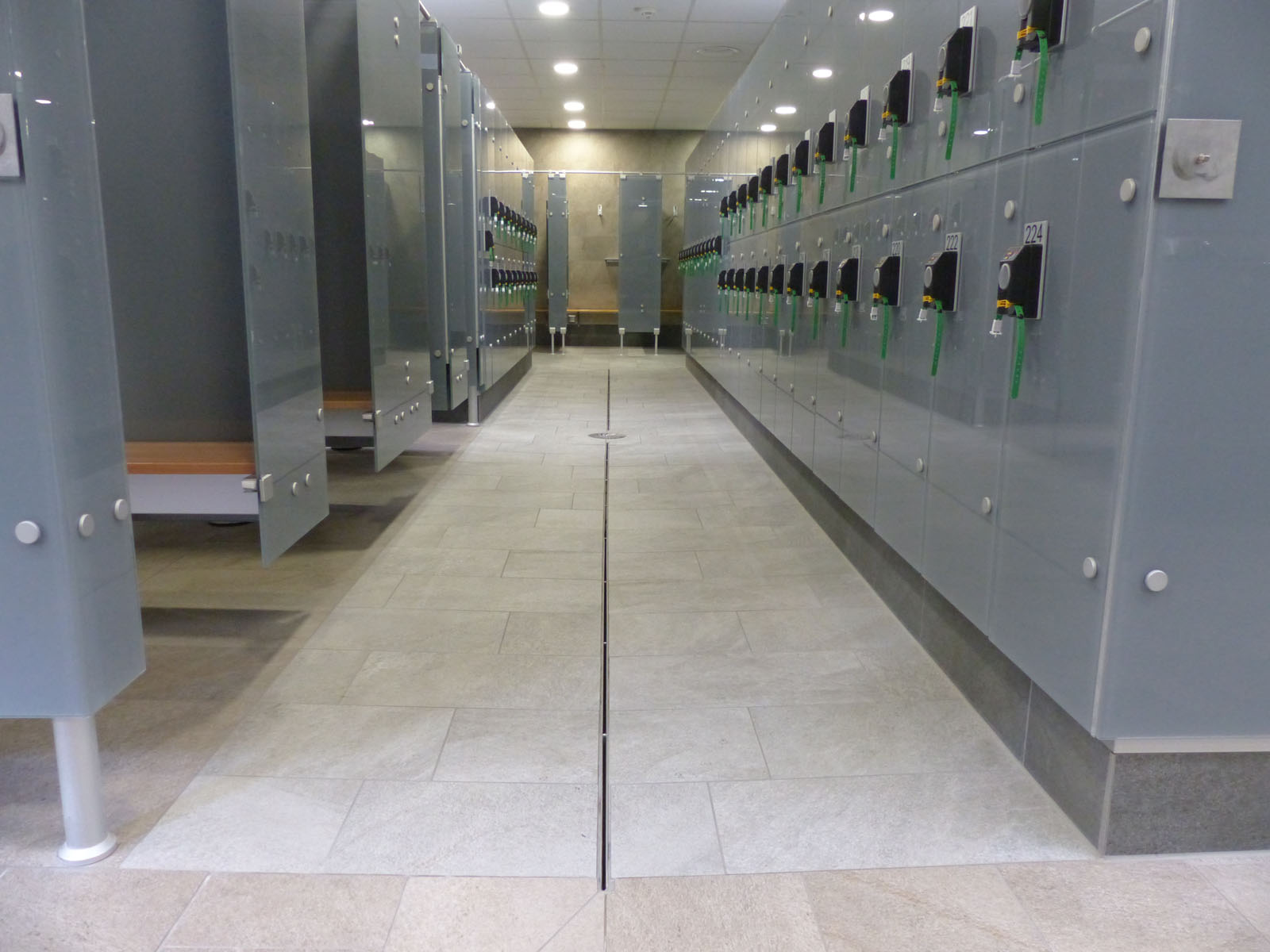ASCHL fertigte für das WC mehrere spezielle Kastenwannen nach Maß mit dreiseitigem Klebeflansch und einseitigem Hochzug an. Alle diese Kastenwannen sind auch mit Stöckelschuhen problemlos begehbar und garantieren, dass die Personen weitgehend im Trockenen stehen. Zudem wurden Wandpaneele nach Maß mit Ausnehmungen geliefert.