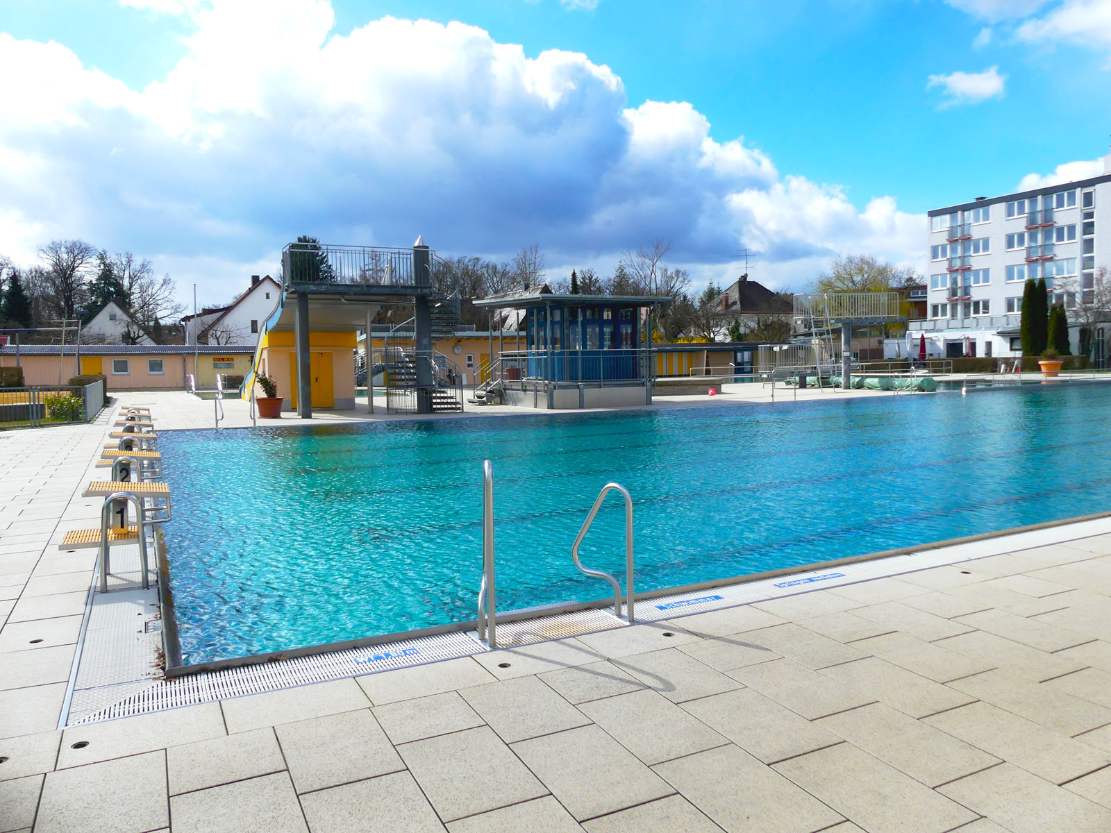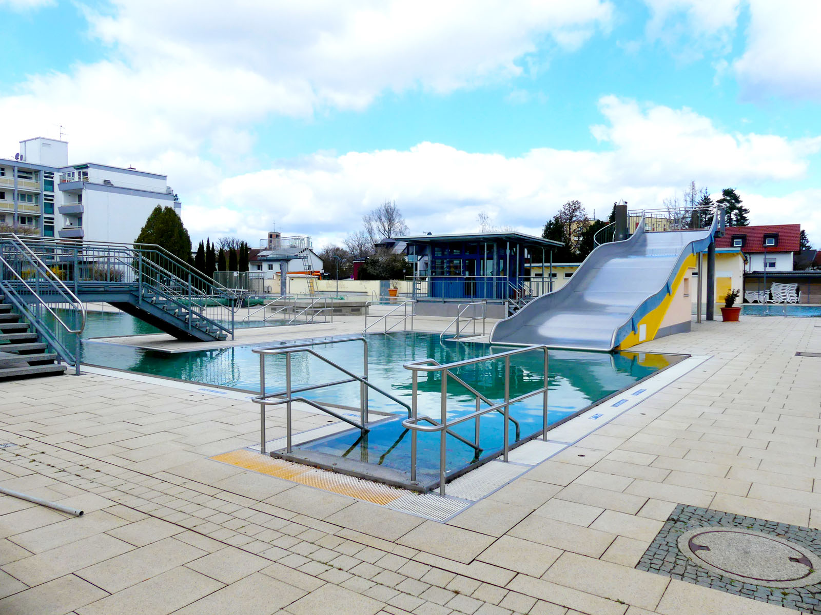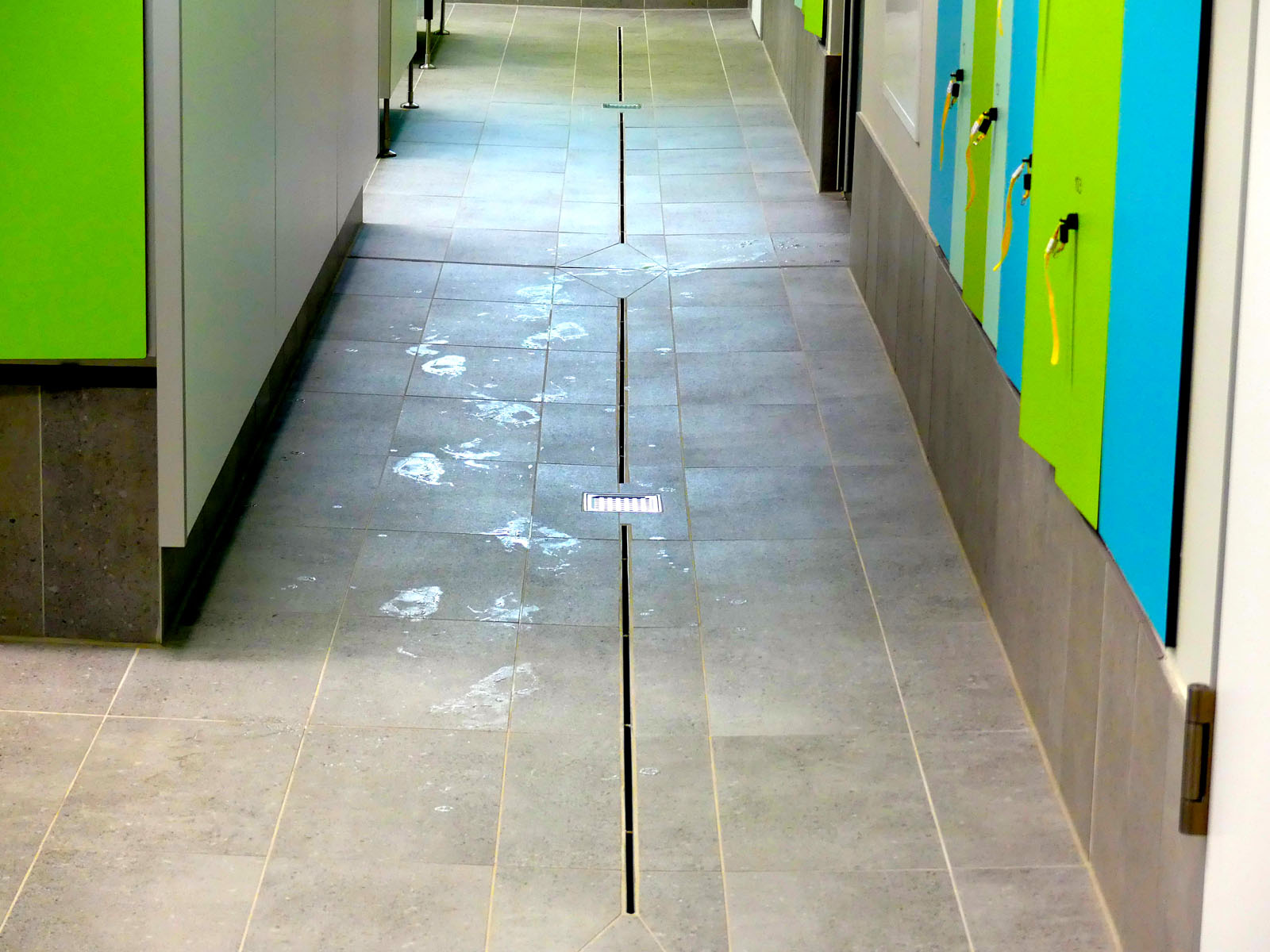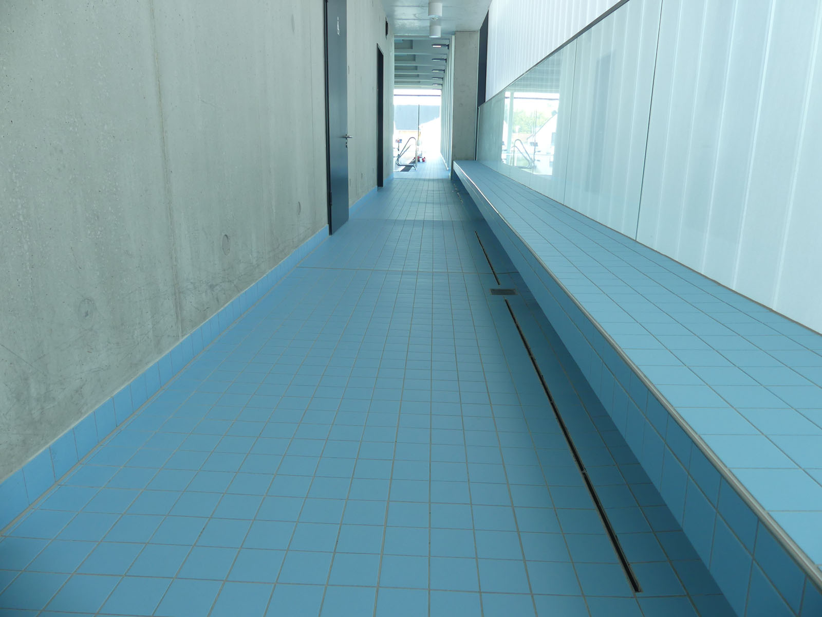 Bereits beim Betreten des lichtdurchfluteten Foyers wird das besondere Ambiente spürbar. Von hier aus gelangen Schwimmer direkt zu den Umkleiden und Duschen mit Zugang zur Schwimmhalle. Zuschauer erreichen über den Umgang der Sporthalle bequem die Tribünenplätze. Eine mobile Trennwand im Foyer ermöglicht flexible Raumaufteilungen – ideal für Veranstaltungen jeder Art.