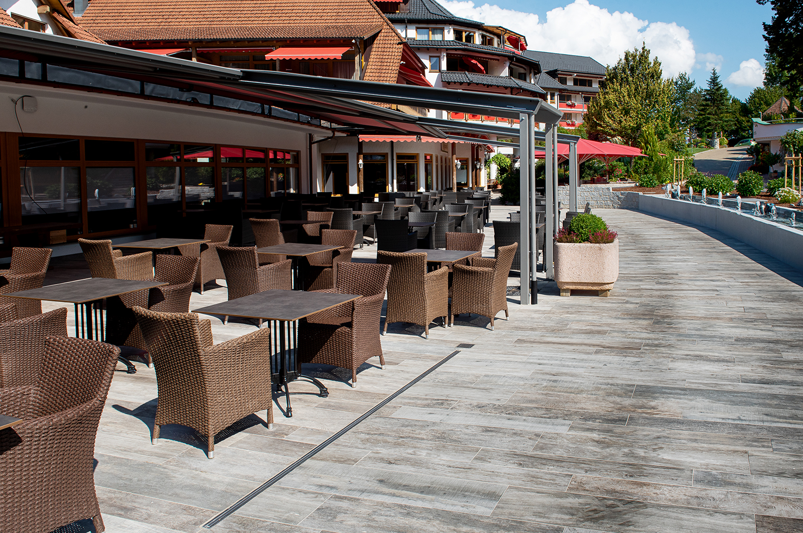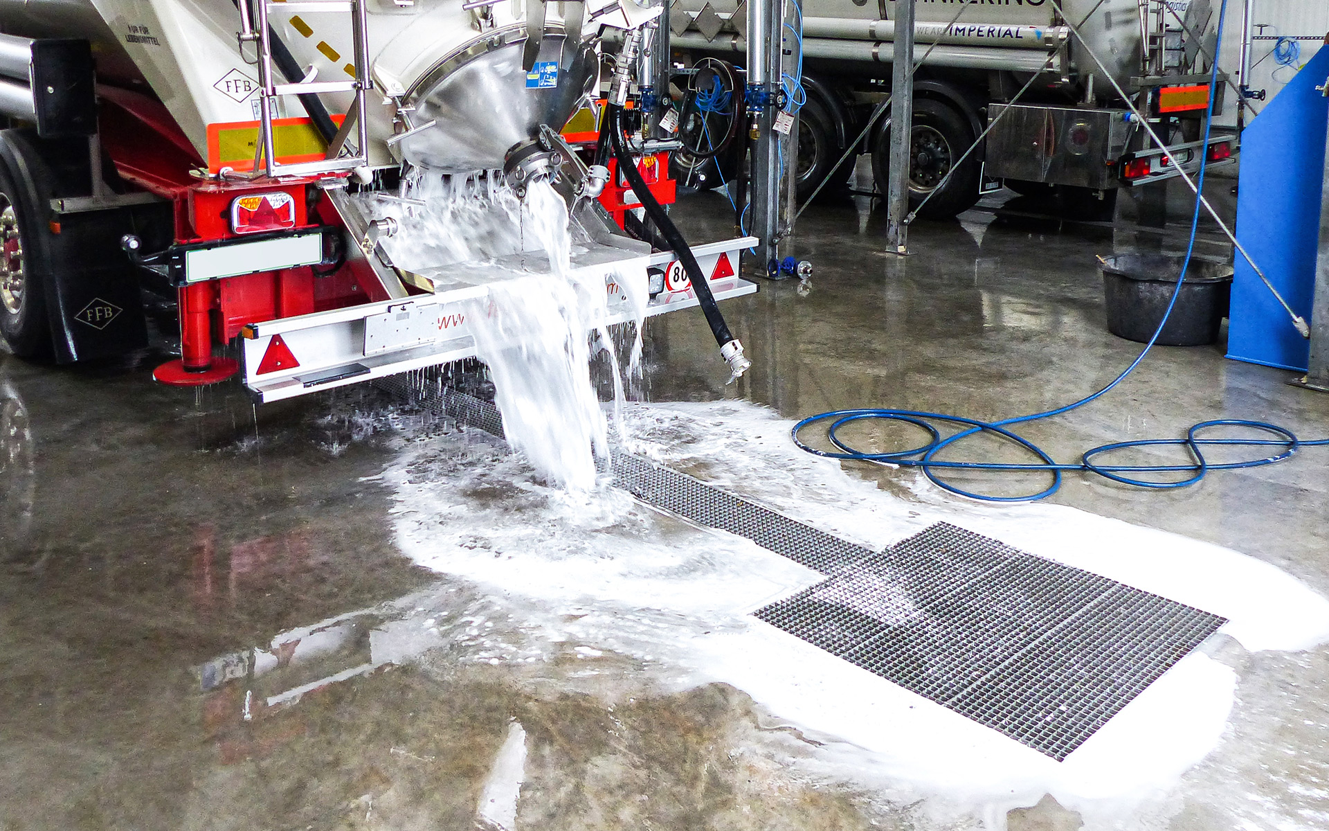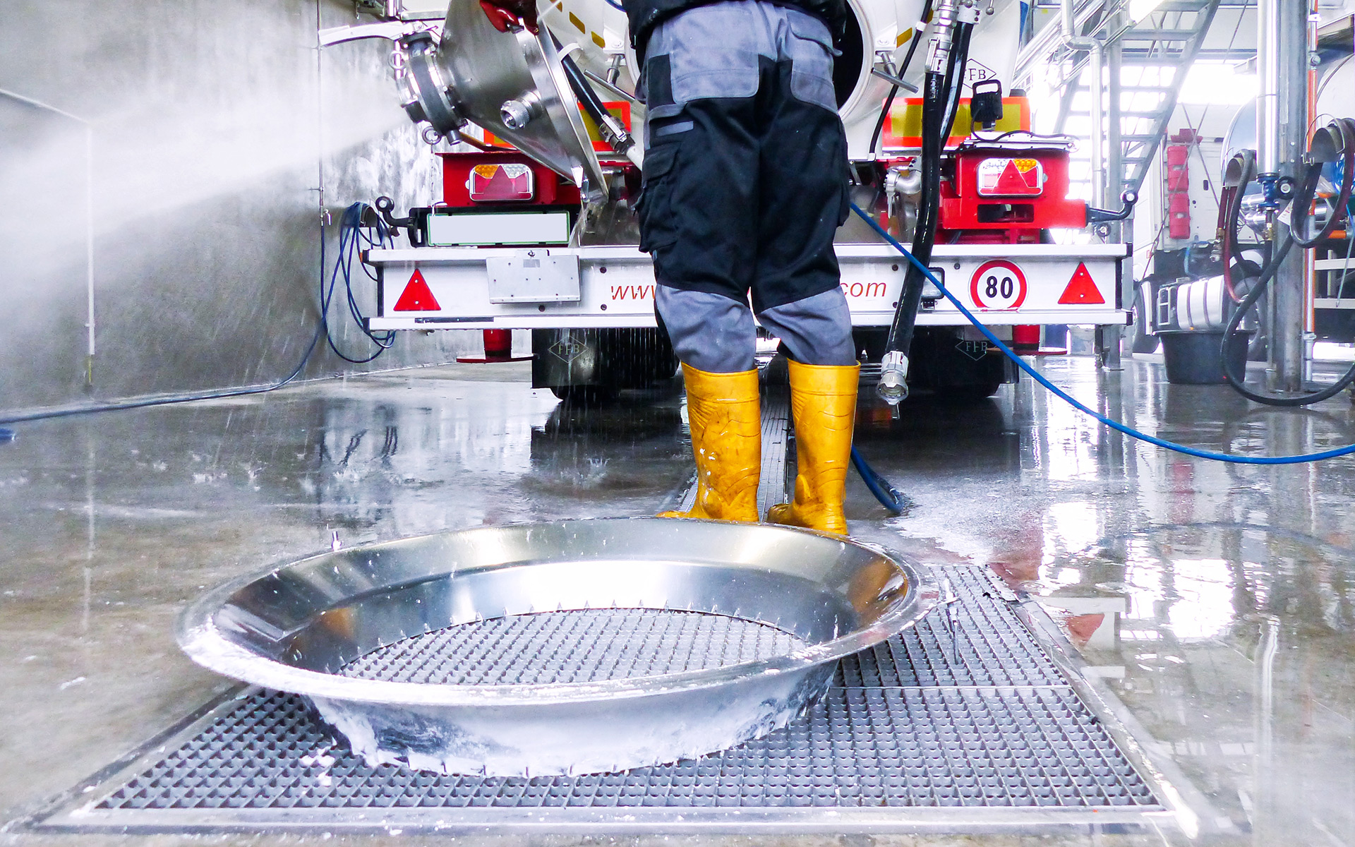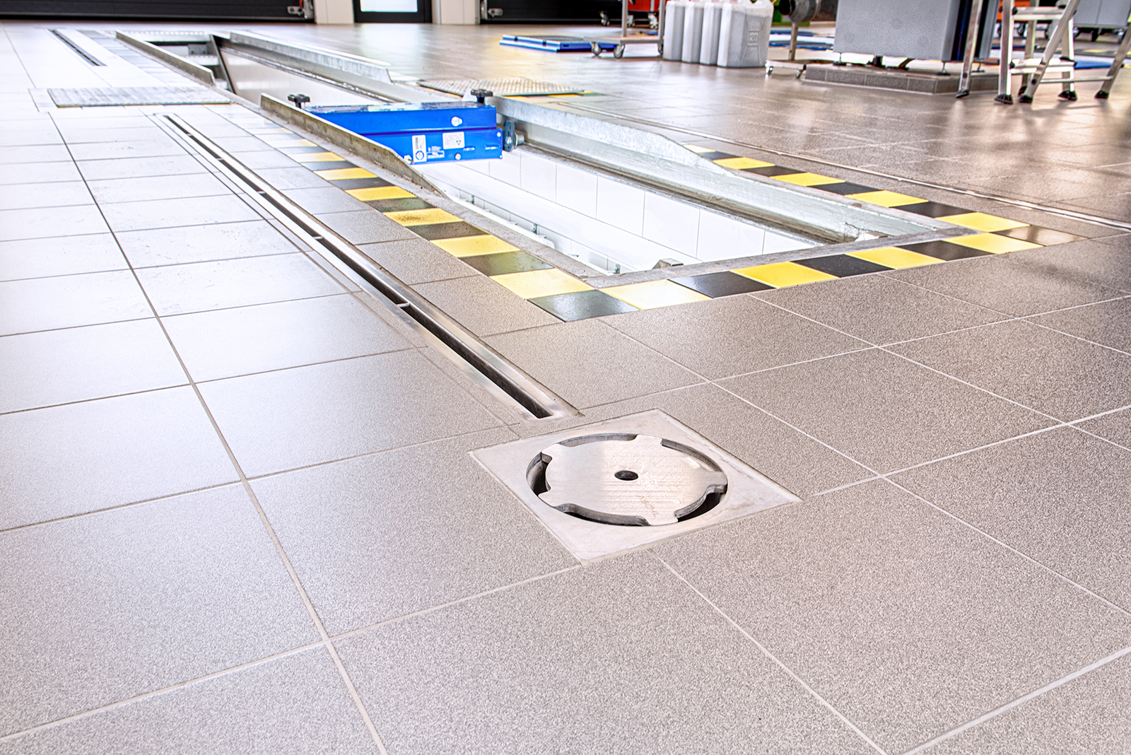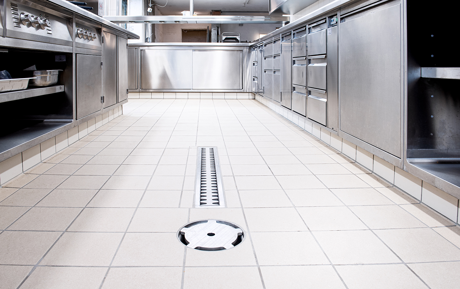 Anspruchsvoll sind Anna Diesslin und das Kiefer-Team auch bei der Technik. Deshalb sind im neuen Keller randverstärkte Kombirinnen und Bodenabläufe von ASCHL eingebaut worden. Ebenso in der Lagerhalle und im Rampenbereich, dort wurden die Flansche den stärkeren Fliesen angepasst. „Wir sind hochzufrieden, das Wasser läuft einwandfrei ab, die Rinnen lassen sich sehr gut und schnell reinigen“, schildert die Kellermeisterin. Das sei ein großer Vorteil im Arbeitsalltag, „denn wir haben immer alle Hände voll zu tun!“