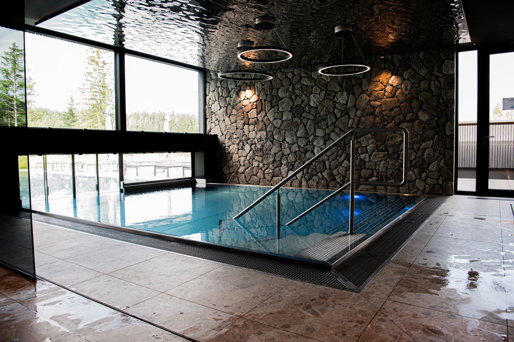 3.500 m² Wellnessfläche stehen für ein Konzept, das Individualität großschreibt. Der 36 Grad warme FKK-Infinitypool auf dem Dach bietet freien Blick über die Baumwipfel. Im Innenbereich ergänzen Eventsauna, Ruhelounges, ein Familienbereich mit Kinderbecken, Schneeraum und Textilsauna das Angebot.