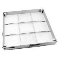 Für wählbare Oberfläche, rückstau- und geruchssicher, gas- und wasserdicht, Vierfachverschraubung, im Tauchbad gebeizt und passiviert, mit Aushebewerkzeug, zum bauseitigen Befüllen mit Beton B400 (gem ENV 206), Wannentiefe 50 mm, Einbauhöhe ca. 75 mm, Belastung 125 KN, Lichte Weite 600 x 600 mm, Außenmaß 735 x 735 mm